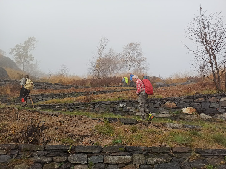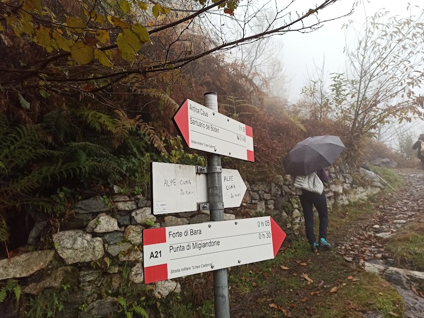 In sette ci troviamo in centro ad Ornavasso sotto una leggera pioggia che smentisce per l’ennesima volta le previsioni che recitavano: “alle nuvole seguirà presto il sole”. In auto saliamo fino all’ultimo tornante della strada per il Santuario del Boden, dove si trova l’ “Antica Cava”, 375. Abbiamo l’onore di essere accompagnati da una guida indigena che della Ornavasso walser conosce tutto, soprattutto la storia. L’altra guida walser del gruppo, esperto in Alta Ossola, oggi si lascerà guidare. Due eminenti soci del gruppo, atterriti dalla pioggia delle sei e trenta a Domodossola, hanno optato per la compagnia soltanto a tavola, fra qualche ora.