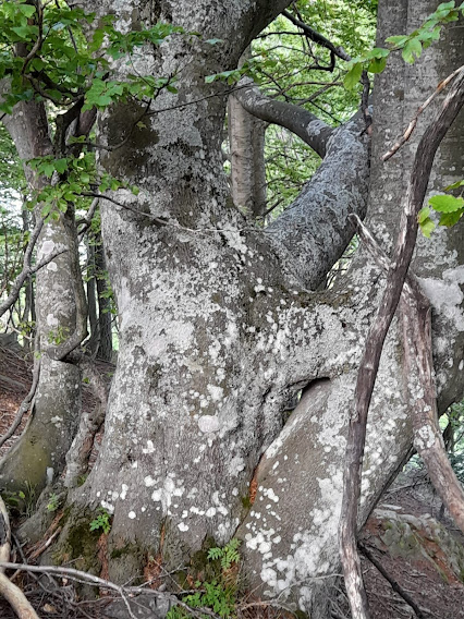 Si vede che all’Alpe Cortiggia, 899, che raggiungiamo rapidamente, vivono persone che fanno rivivere la montagna senza bisogno di devastarla. Nel bosco bellissimo si alternano faggi ed abeti. Più in alto troveremo larici monumentali. Si inizia a salire e, dopo un’ora dalla partenza, siamo all’Alpe Prato Grande, 1139.