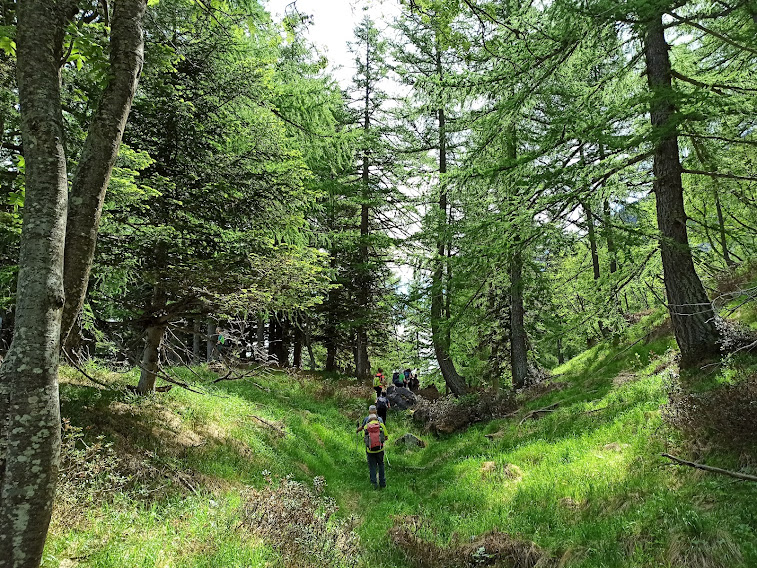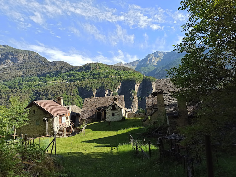 Anche qui i cinghiali arano i prati, ma molto meno che nell’alta Val Bognanco. Passando da un piccolo alpeggio (Patella), raggiungiamo Selvanera di Dentro, 1158, altro piccolo paradiso fra questi monti. E’ il luogo prescelto per una lunga pausa e un giusto ristoro. Qualche ora più tardi dalle baite ci dirigiamo ad ovest e prendiamo l'evidente sentiero che, dopo un tratto pianeggiante sui consueti baratri, scende nel bosco ripido a tornanti e ci conduce alle auto in quel dell’Alpe Salviggia (un’ora da Wolf). A Varzo, in un parco meraviglioso, dimentichiamo le fatiche della giornata.