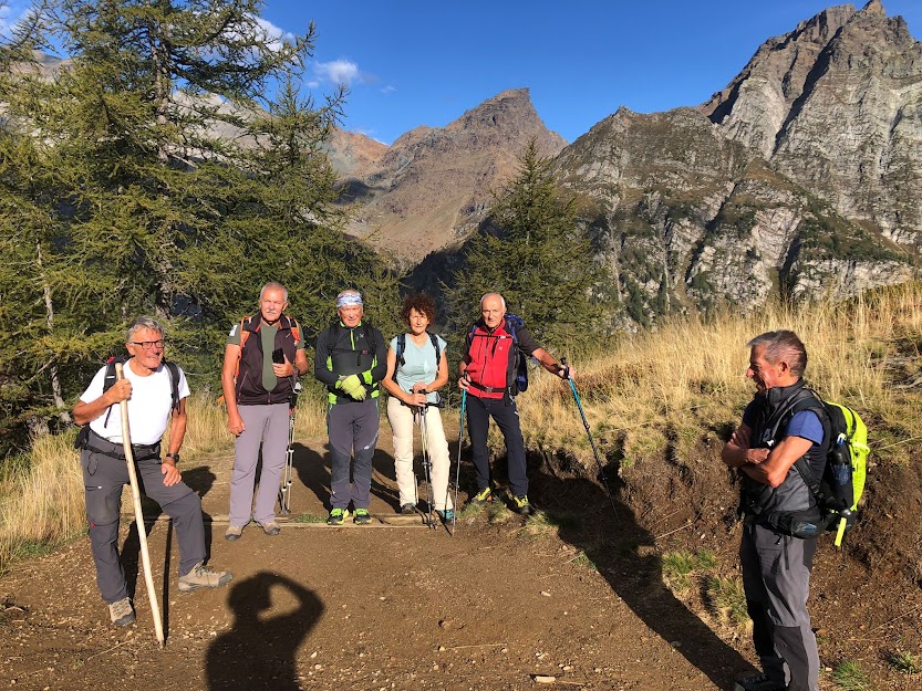 In una fresca alba non ancora autunnale, con sole, nuvole e qualche ombrello negli zaini, saliamo a Devero, 1631, senza pagare il pedaggio, forse perché siamo in un giorno feriale di metà settembre. Quattro anziani accompagnati da due medici, anche loro anziani, e dalla giovane badante imboccano il sentiero per Crampiolo e raggiungono Corte d’Ardui, 1748.