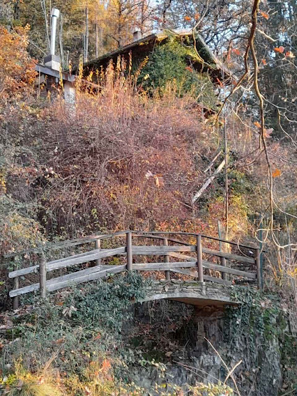 Ci dovremmo trovare nella piazza di Cossogno, ma la piazza è inaccessibile per lavori in corso. Torniamo indietro e, appena prima del ponte a ingresso paese, prendiamo la stradina sulla sinistra e posteggiamo in prossimità del percorso del chilometro verticale, a quota 400.