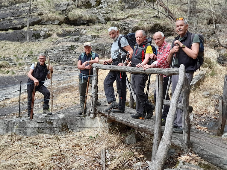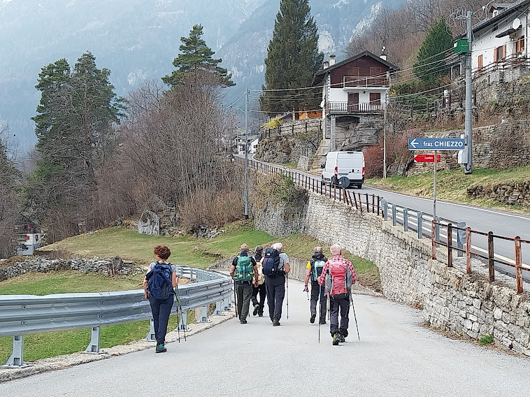 In una calda giornata di nuvole, con sprazzi di sole e qualche prudente ombrello negli zaini, ci ritroviamo a Varzo. Mancano due amanti della neve che ieri si sono goduti una splendida giornata di sci in Alta Formazza. Gli altri, nonostante la magnanimità dell’INPS, ieri erano diversamente impegnati.