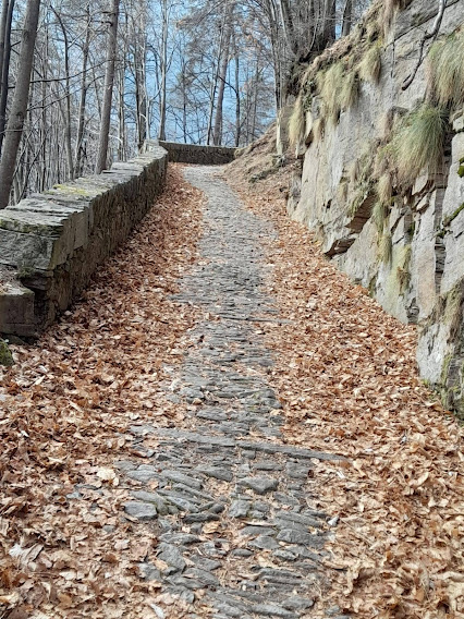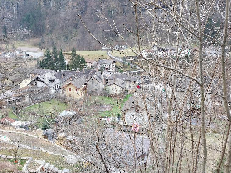 Da questo bellissimo pianoro si gode di uno stupendo panorama su Varzo. Su alcuni alberi notiamo tanto vischio, attraente visti i costi da oreficeria, ma pericolosamente esposto su un precipizio. Breve pausa fotografica e torniamo sui nostri passi, scendendo lungo la mulattiera fino a quota 680, dove si trova il bivio per San Domenico (dieci minuti).