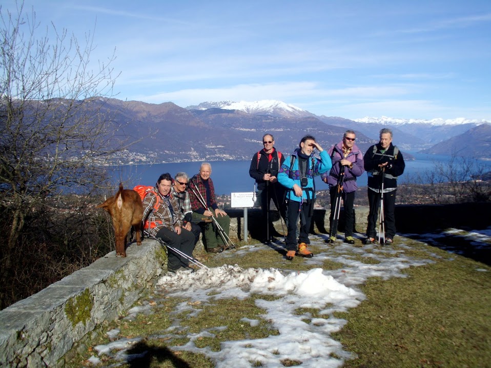 La giornata è stupenda e non fa freddo, pur essendo pieno inverno. E' ancora l'alba quando otto anziani, in prevalenza dipendenti INPS, s'imbarcano sul traghetto delle 7.20 da Intra a Laveno. Qui raggiungiamo rapidamente la stazione e saliamo sul treno deserto diretto a nord, che ci porta, in dieci minuti, a Porto Valtravaglia, sempre quota 200. Su strada asfaltata, passando per Domo (non d'Ossola!), raggiungiamo in meno di tre quarti d'ora la frazione di Ligurno. La strada adesso si stringe e si trasforma, poco dopo, in un sentiero tortuoso e “sporco”, ma è normale in inverno.