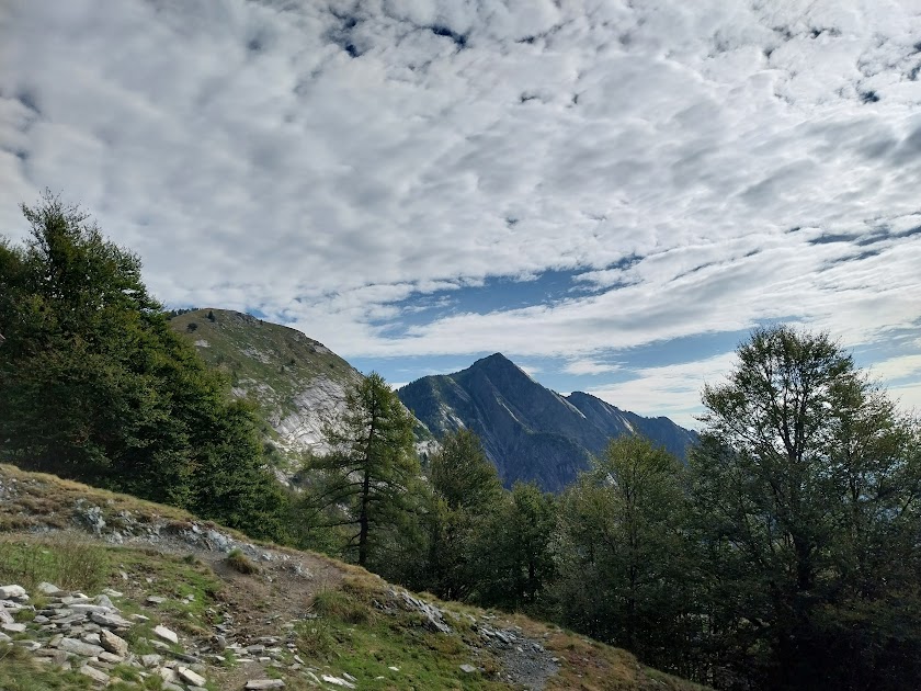 Qui c’è una fontana con un’area attrezzata, in prossimità di una cappella, ed arriva una strada che inizia fra Dissimo e Olgia e passa dall’Alpe Caviano. Il sentiero M41 prosegue sulla sinistra, sempre verso nord, e ci porta, con salita ripida solo per brevi tratti e poi dolce in un bel bosco di faggi, ai 1525 dell'Alpe Rovina di Sopra.