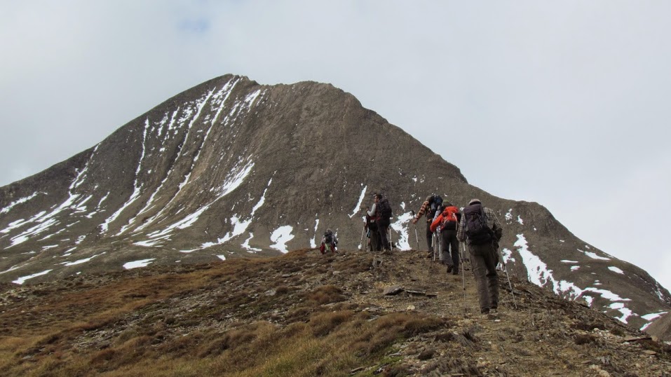 L'ultimo tratto, su terreno friabile, richiede attenzione, ma parlare di forte esposizione, come in alcune descrizioni sul web, crea inutili allarmismi. Certamente, in caso di neve o brutto tempo, è tutta un'altra storia. Dedichiamo un quarto d'ora al magnifico panorama che ci circonda, nonostante si stia rannuvolando e soffi un venticello freddo. Si ridiscende sullo stesso percorso di salita fino a ritrovare l'evidente sentiero Castiglioni.