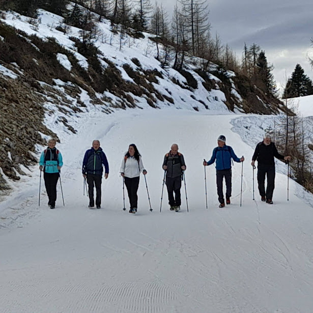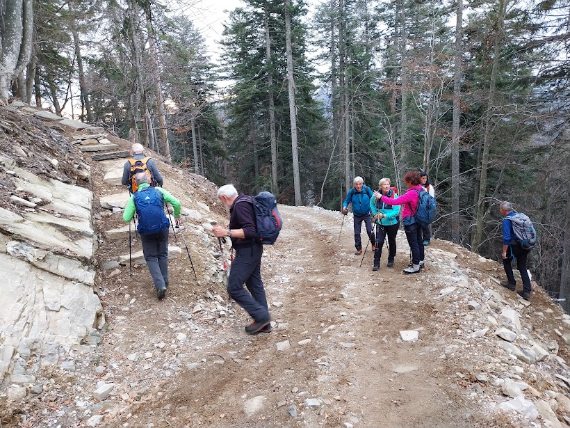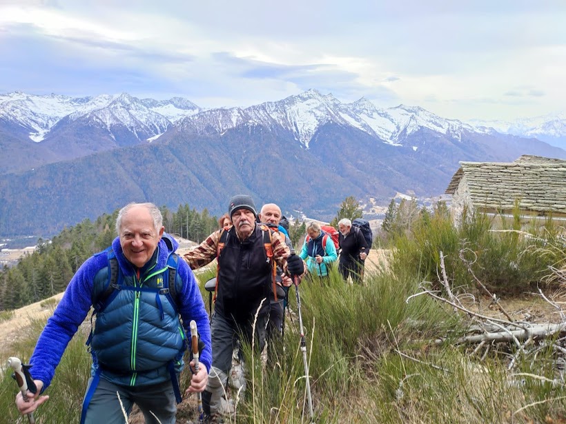 VIGEZZO- 11-02-2024-- Una gita tranquilla, molto panoramica, per godersi dall’alto le bellezze della Valle dei Pittori. Si dovrebbe camminare sulla neve, ma non è l’anno giusto. Solo a La Piana un po’ di neve “sparata” e tanta ombra permettono di sciare, ma vedere i bei pendii del Trubbio completamente verdi, anzi gialli, rattrista.
