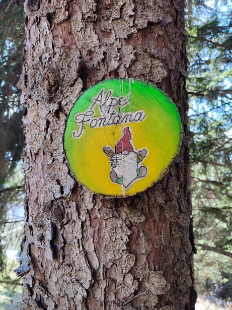 Qui ci aspetta anche il sole. Proseguiamo per qualche minuto verso l’Oratorio di San Rocco ed approfittiamo di un bel tavolo di legno con panche per sfamarci. Da La Cima mezz’ora. Siamo di fianco alla seconda pista che sale a La Piana, questa da Craveggia, passando appunto da La Colma e da Pidella. Anche qui pochissima neve, niente del tutto nel bosco. Lungo il sentiero che taglia i tornanti torniamo a valle.