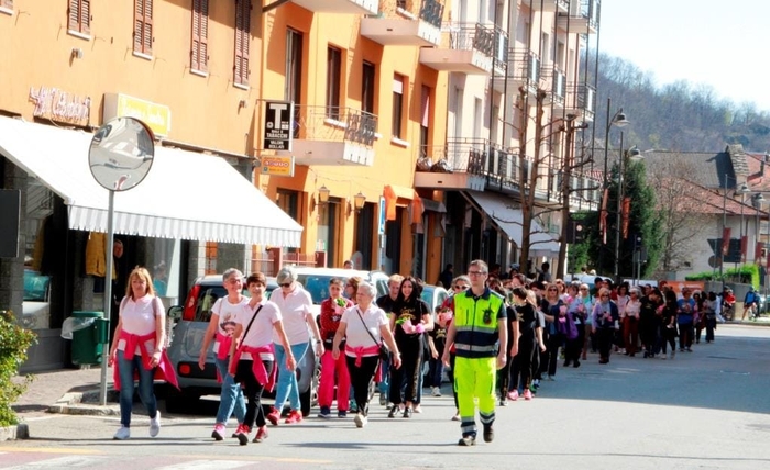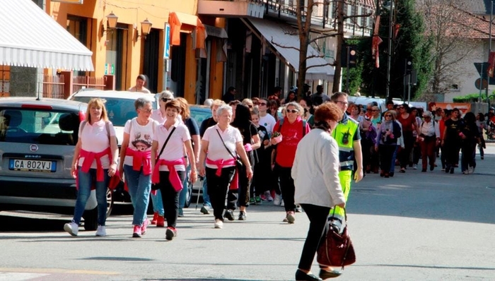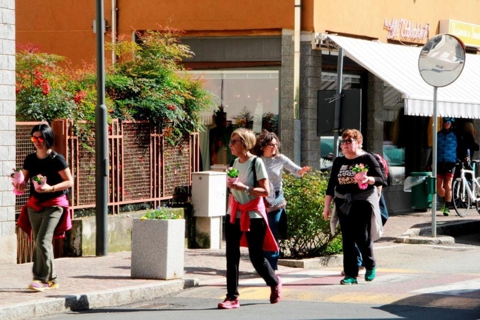 QUARONA-08-04-2024-- Organizzata dalla Lega italiana per la lotta contro i tumori assieme a Soroptimist con i ragazzi di pasSePortout e Volere danzare nel pomeriggio di sabato 6 aprile donne e uomini hanno camminato con un fiore per le vie della città col duplice scopo di promuovere la salute e prevenire la violenza di genere.