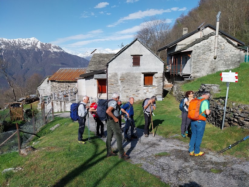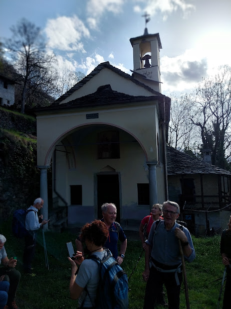 E’ una splendida giornata con temperatura quasi estiva. Il ritrovo è al campo base di Premosello Chiovenda per il caffè. Saliamo in auto al campo 1 in quel di Colloro, 500. Con tre badanti e due medici i quattro anziani del gruppo, fra i quali il progettista della gita odierna al rientro dopo tempi difficili, sono nella classica botte di ferro. Siamo nel Parco Nazionale della Val Grande. In prossimità della chiesa di San Gottardo inizia il sentiero A36 diretto a Capraga passando da Sasso Termine.