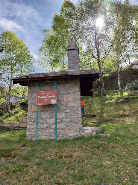 Passiamo dall’Alpe I Casali, 789, dove c’è la bella baita di un amico, e raggiungiamo Piazza Grande, 921, in corrispondenza di una cappella con piccolo campanile e di un’indicazione altimetrica “generosa” (quasi tre quarti d’ora). Nel grande alpeggio, direi un paesino sparso su una vasta zona, ci rifocilliamo al sole e al riparo dal vento. Alle baite più alte, sulla sinistra, riprendiamo il sentiero A33 che, passando dall’indicazione dell’Alpe Crota, ci porta all’altro vasto alpeggio di La Tagliata, 1221, in meno di tre quarti d’ora.