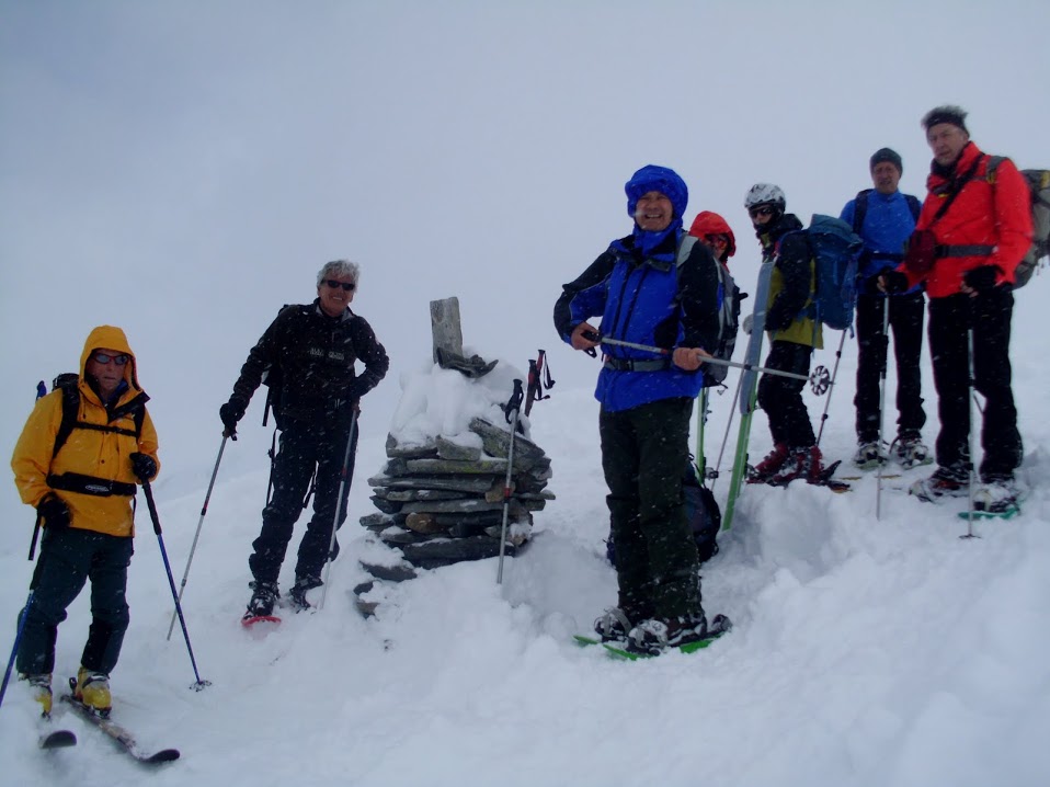 Poco meno di un'ora e mezza da Wasenalp. Vento, freddo e nevischio accelerano i preparativi per la discesa, ovviamente più rapidi per i ciaspolatori. Gli sciatori, nonostante qualche tuffo alla Cagnotto nella morbida neve fresca, recuperano rapidamente ed aspetteranno agli chalet, dove arrivano anche i dispersi del mattino.