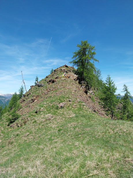Sulla nostra destra, alla base delle Rocce del Gridone, qualche piccolo nevaio residuo. Dopo un’ora, io con i miei dieci minuti accademici di ritardo, siamo alla Bocchetta di Misello (1580 per la cartina, 1614 per il cartello che indica Testa di Misell – Sasso Rosso). Siamo sulla linea di confine Ossola – Ticino, nella Riserva Forestale di Palagnedra. Gli altri, mai stanchi, salgono in pochi minuti alla vicina Testa di Misello, mentre io medito sul passare del tempo.