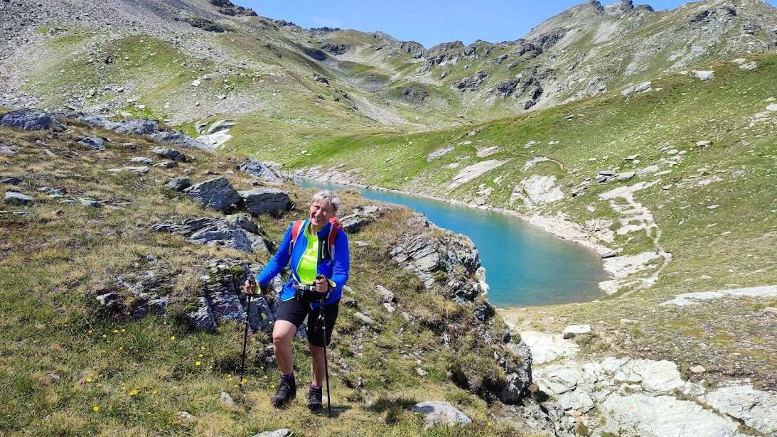 Dopo pochi minuti ci fermiamo in riva al laghetto più alto, 2580, per il pranzo. Soddisfatti di una laboriosa foto di gruppo, scendiamo al più grande dei laghi, 2431, lo costeggiamo e passiamo dai residui di quello più in basso, praticamente cancellato dal crollo di un tratto di morena, tanti anni fa, in modo simile a ciò che avvenne al Lago delle Locce nel 1979, a Macugnaga. La discesa sul sentiero evidente e da percorrere con attenzione nel tratto che costeggia la bella cascata ci porta a Chusmatte, 1810, ed alle auto ad Engiloch in due ore e mezza da Sirwoltesattel.