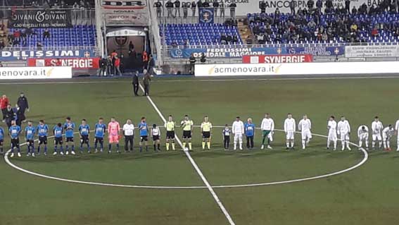 NOVARA (4-3-2-1): Marchegiani 6; Barbieri 5,5 (dal 61′ Cassandro 6), Sbraga 5,5, Pogliano 5,5, Cagnano 6; Bianchi 5,5, Buzzegoli 5,5 (dal 61′ Collodel 6), Schiavi 5 (dal 46′ Gonzalez 5,5); Peralta 5,5 (dal 69′ Capanni 5), Piscitella 6; Bortolussi 5. A disposizione: Marricchi, Ferrara, Tartaglia, Nardi, Visconti, Fonseca, Bellich, Pinzauti. All. Banchieri: 5,5