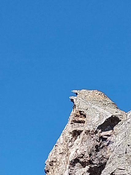 Riprendiamo a salire gradualmente e il tratto ripido finale ci porta alla Bocchetta, 2498, sovrastata sulla destra da un masso che, nella giusta prospettiva, assomiglia veramente al cantore dell'alba. Due ore e venti minuti di cammino. Un po’ di affanno per l’anziano assistente e un ginocchio dolente per il nostro selezionatore, comunque sempre in forma e che recupererà senza problemi. Per l’anziano qualche preoccupazione per il suo futuro agonistico.