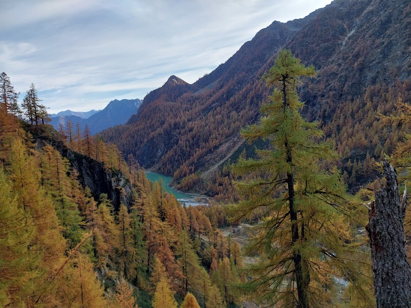 Lungo il bellissimo sentiero C27a, che fa parte dell’ennesimo SG (Sentiero Geologico), scendiamo ad incrociare il sentiero più frequentato della zona, che è quello che collega Cheggio all’alta Valle Loranco e al Passo delle Coronette (C27). Diretti verso il lago passiamo dall’Alpe del Gabbio, attraversiamo il torrente Loranco, ricco di acqua, costeggiamo la sponda meridionale e oltrepassiamo la diga fino alle auto (un’ora e un quarto). Il giro del lago in senso antiorario è completato.