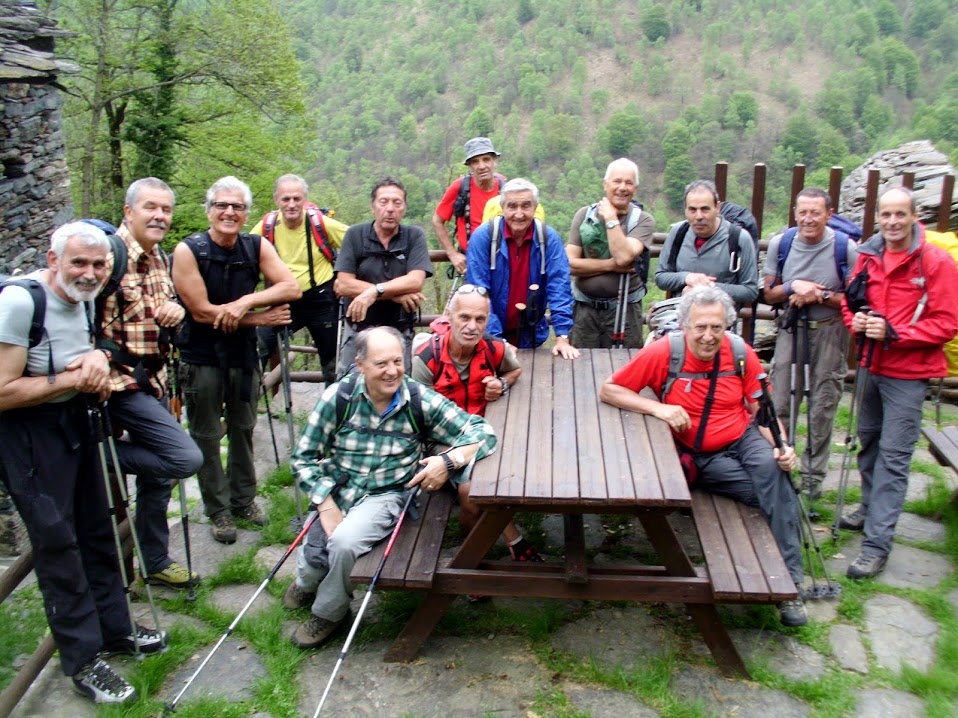 Fra loro anche un maestro di sci taroccato: tanto non c'è neve! Il ritorno allungato incrementa notevolmente i tempi odierni. Partiamo in quindici da Ruspesso, 940, dove termina la strada per l'Alpe Ompio. L'escursione più impegnativa del solito spaventa, ma attira. Nuvole e sprazzi di sole. Rapidamente, lungo il sentiero A54 che più avanti diventerà A52c, raggiungiamo l'alpe e il Rifugio Fantoli, 1000. Sempre in direzione nord, che poi sarà ovest e nord – ovest nella parte finale, proseguiamo per l'Alpe Caseracce, 1238, aggirando sulla destra (oriente) il Monte Faiè. Breve sosta in contemplazione della Val Grande e si riparte per l'Alpe Pianezza e la Colma di Vercio, 1255, (un’ora e un quarto da Ruspesso).