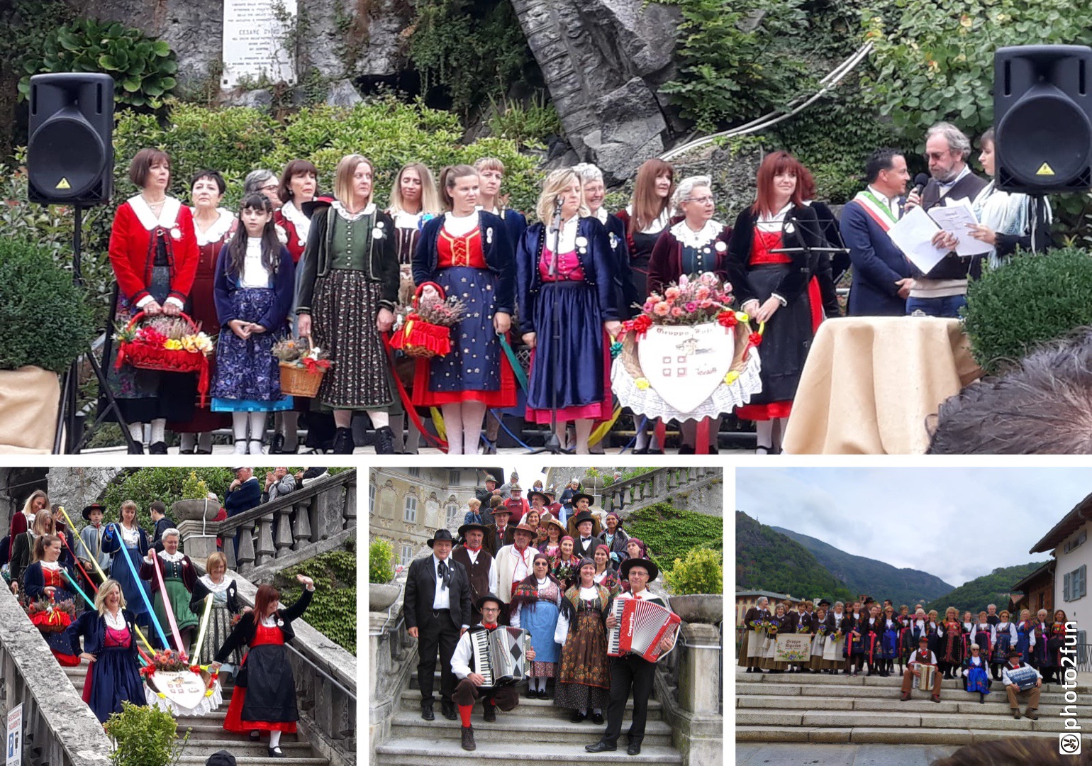 in costume e 50 fisarmoniche nella sfilata della Folkermesse organizzata a Varallo domenica scorsa. Un totale di 31 gruppi che provenivano dalla Val Mastallone, Val Sermenza, Val Grande, da Varallo e dintorni, e dalla val d'Ossola e Vco, da cui provenivano il Gruppo Folk Valle Vigezzo, Gruppo Folk Città di Domodossola, Gruppo Arsciol Vagna, Gruppo Valle Anzasca, Gruppo Folk Mottarone, Gruppo Folk Trontano e Sciupatel Di Beura Cardezza, Gruppo Rigaden Ornavasso, Gruppo Valstrona Myosotis, Cappello Monti e Forno, e Il "coro" Amici Della Montagna. Durante la mattinata erano state organizzate visite guidate della città, nel pomeriggio la sfilata, con la presentazione di tutti i costumi, dei fisarmonicisti e l'esibizione.